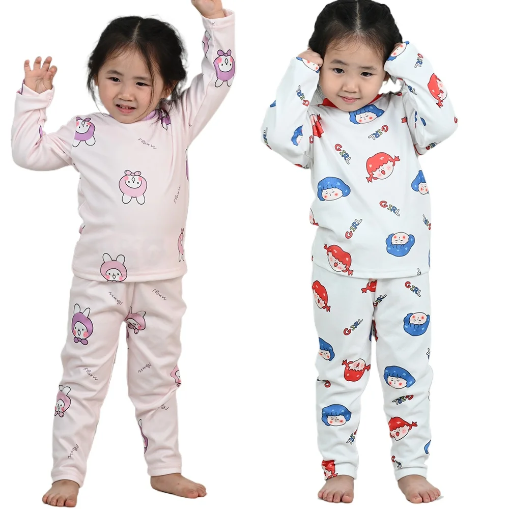 Children Cotton Pajamas Suit Kids Cartoon Sleepwear Autumn Long Sleeve Top+Trousers 2Pcs Boys Girls Velvet Pyjama Loungewear Set